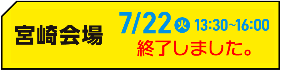 宮崎会場7月22日 都城会場11月12日 延岡会場11月19日